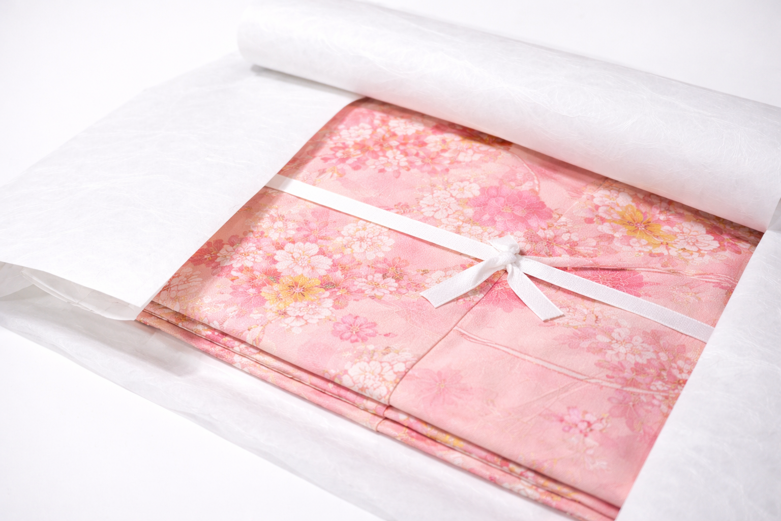 十分に乾かしたあとは、たとう紙に包んで保管します。収納場所は、桐箪笥の中など湿気がこもりにくい環境が理想です。